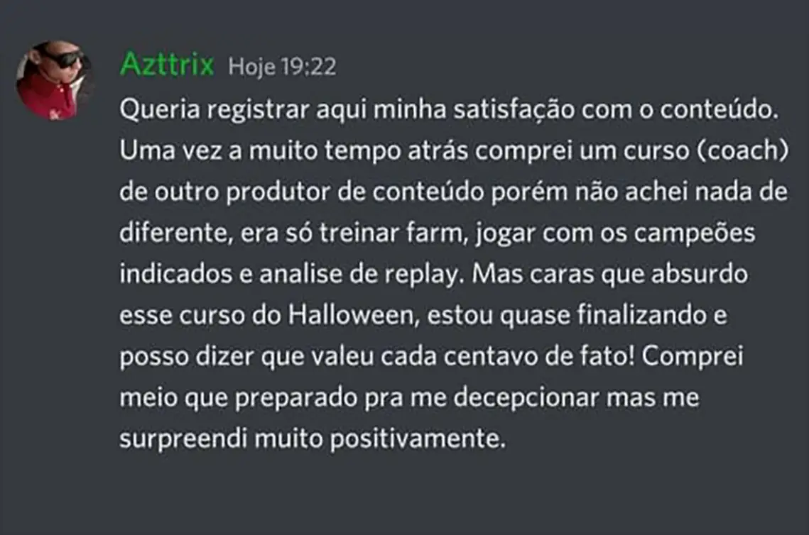 No Despertar do Jungler o foco é o conteúdo gravado. Mas você terá acesso a um grupo exclusivo no Discord e no WhatsApp, para interagir com outros alunos e continuar evoluindo.